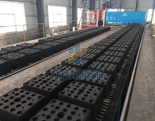 1、全自動(dòng)造型機(jī)打出來(lái)砂型直接在鏈板線上循環(huán)輸送,可以是單排雙列,也可以雙排雙列;